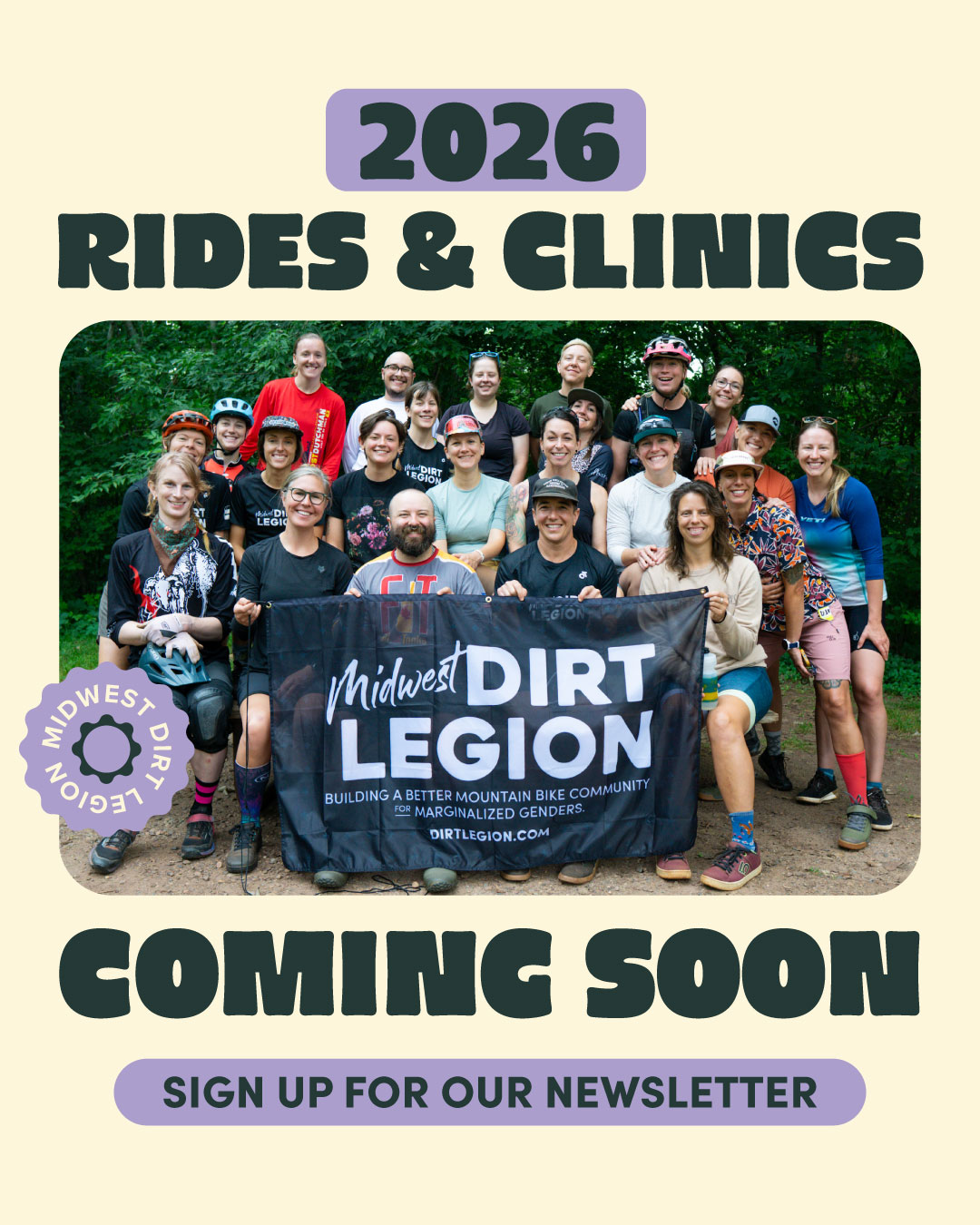 This post is a promotional announcement about upcoming 2026 rides, clinics, and events that will be announced in the future. It does not contain any specific event information such as dates, times, or locations. The image confirms this is a "COMING SOON" teaser encouraging newsletter signups. There are no actual events to add to the calendar at this time.